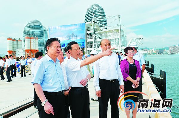 2016年5月24日,張高麗來到鳳凰島國際港口二期工程建設現(xiàn)場,工程正在熱火朝天建設中。張高麗親切慰問了建設工人,并來到鳳凰島國際港口綜合大廳,聽取了海南推進“多規(guī)合一”、“一帶一路”建設以及海棠灣新區(qū)建設發(fā)展有關情況匯報。